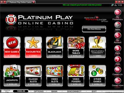 Platinum Play Online Casino bietet interessierten Spielern spannende und packende Unterhaltung. Neuartige Spiele, eine angenehme Umgebung und zahlreiche Gewinnchancen machen das Platinum Play Online Casino zu einem der beliebtesten Casinos weltweit.